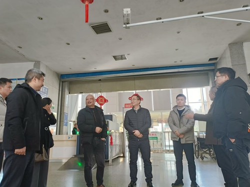 雷鵬一行深入到候車大廳、售票窗口、“三品”檢查處、安檢口等一線服務(wù)崗位,實(shí)地了解了客流預(yù)測、售票情況,查看了“三品”檢查、安檢流程執(zhí)行情況。期間,公司經(jīng)理賀友光詳細(xì)匯報(bào)了春運(yùn)期間交通、消防安全管理方案、車輛調(diào)配計(jì)劃、人員排班安排以及后勤保障等工作。