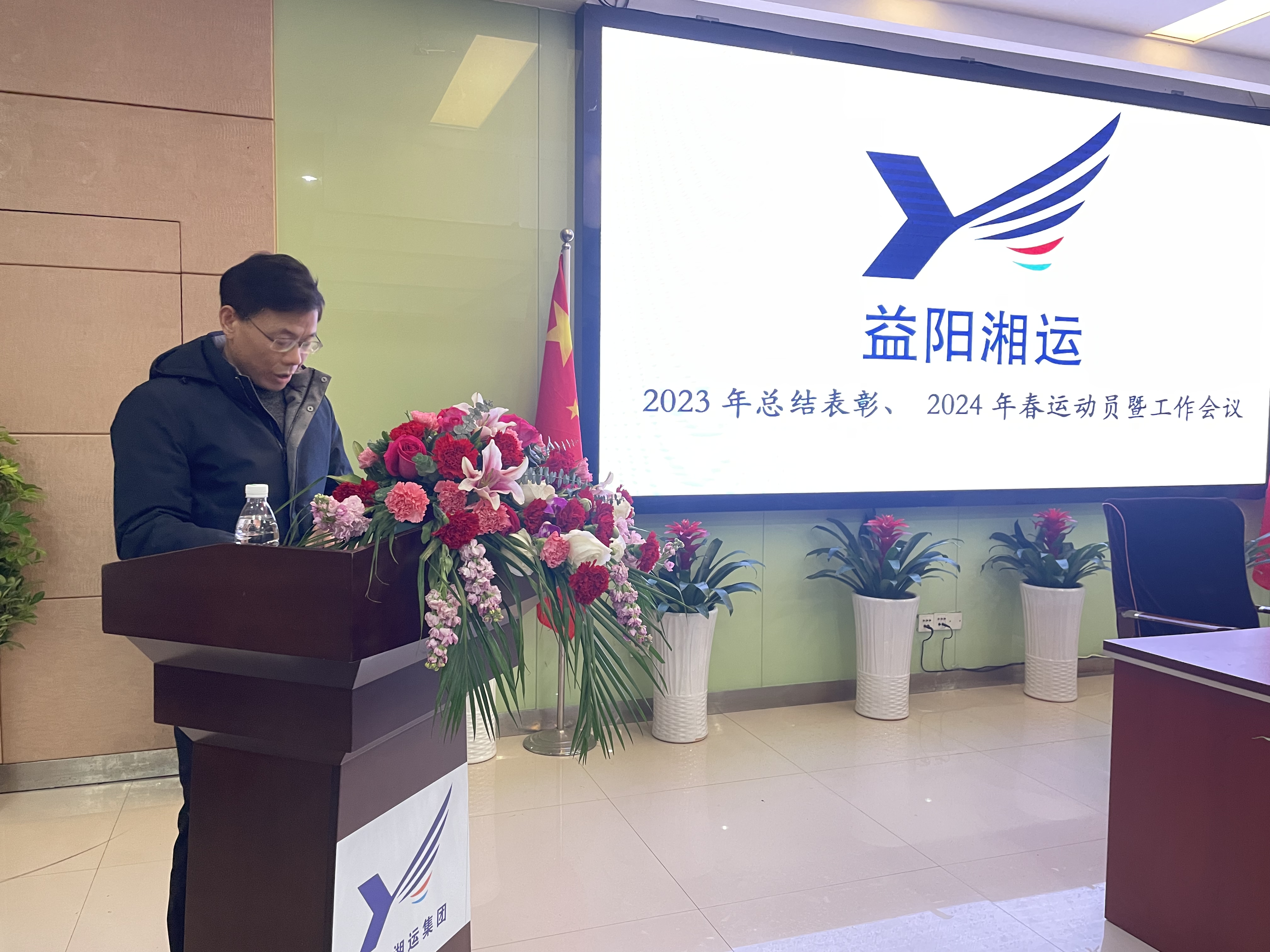 “益運股份”副總經理湯學文先后作了2023年度工作總結和2024年春運動員;副總經理王錫龍作了2024年春運安全工作安排;總經理祝宏武部署了2024年“益運股份”全年工作。