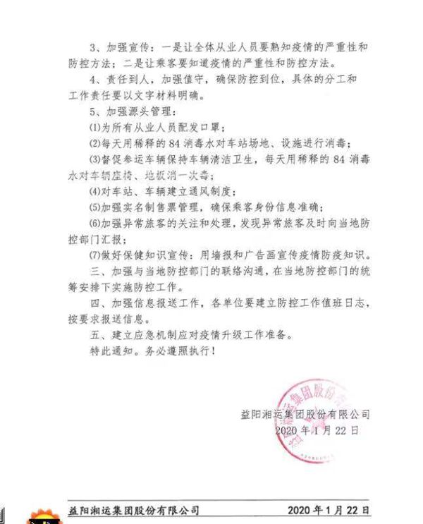 益陽湘運(yùn)集團(tuán)股份有限公司正式發(fā)文,對集團(tuán)疫情防控工作作出了全面部署。