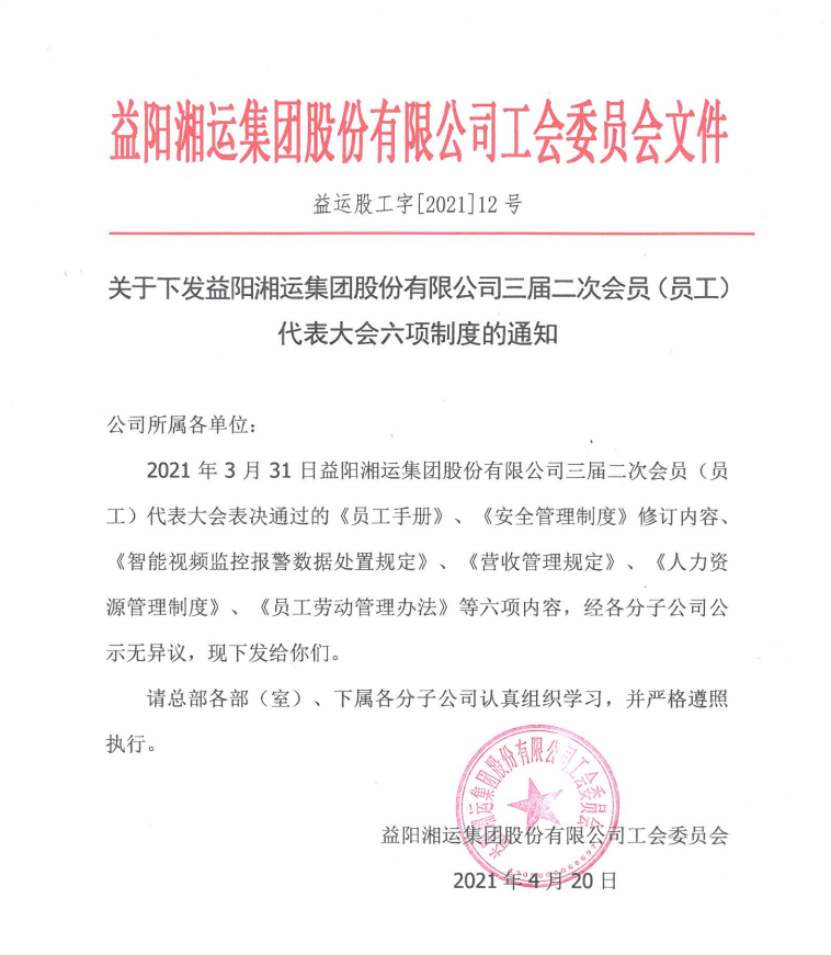 關(guān)于下發(fā)職代會通過的制度的通知