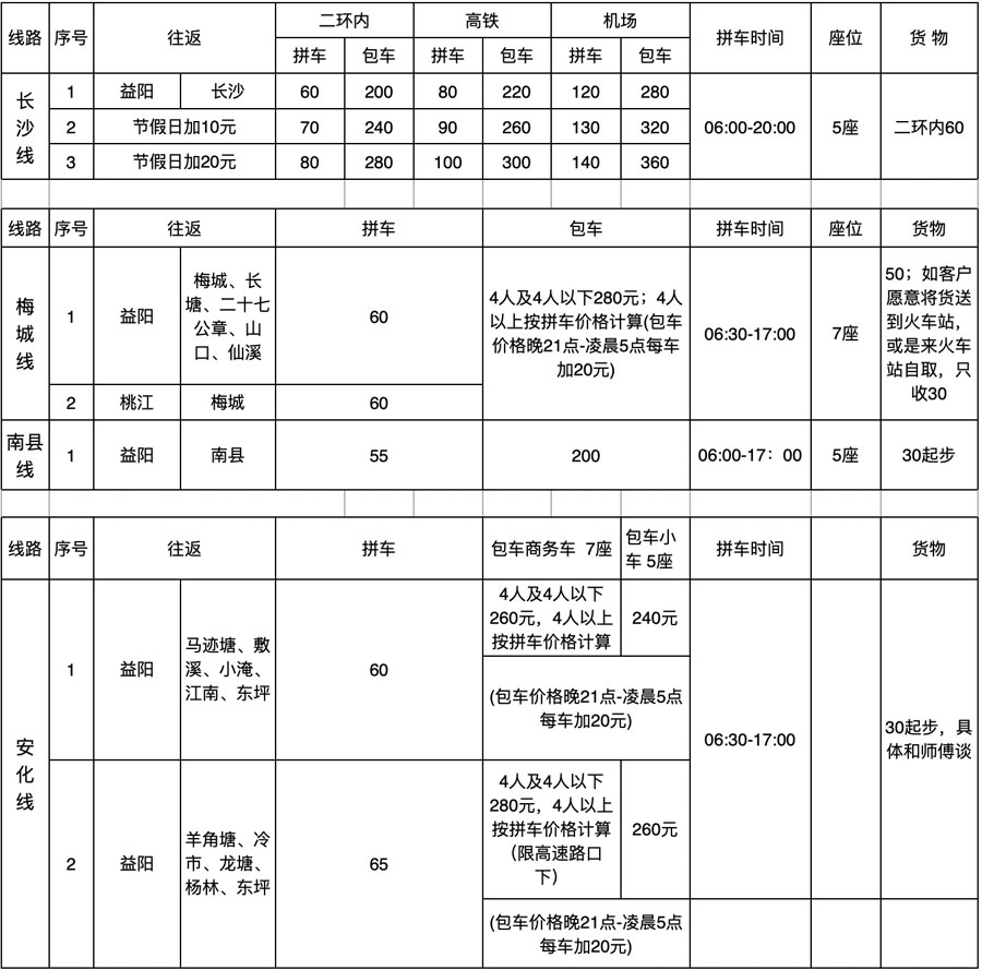 拼包車收費標準